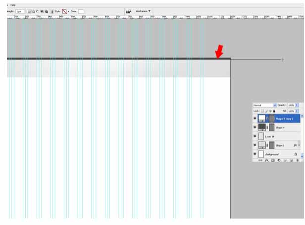 يك لايه ديگر ايجاد كنيد و با ابزار Tool Rectangle يك مستطيل بسيار كوچك مانند تصوير ايجاد كنيد و با رنگ خاكستري تيره آن را پر كنيد.
