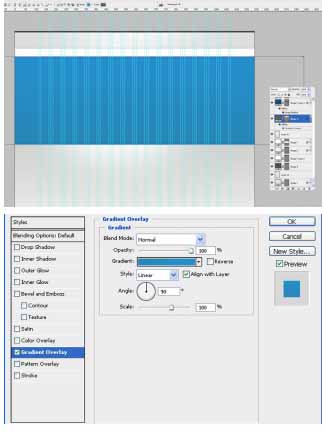 9 - با ابزار رسم مستطيل يك مستطيل 400 pxدر بالاي صفحه بكشيد و يك لايه جديد ايجاد كنيد و آن را با رنگ سفيد پر كنيد و با ابزار گرادينت با كد رنگ 2787b7#و #258 fcdيك گرادينت آبي مانند تصوير ايجاد كنيد.